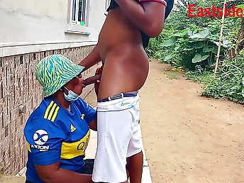 Passer-by MissBlackreey, MasterB, and their African Ensorcell Demiurge share a suck, jizm-packed rail in this homemade dark-hued-